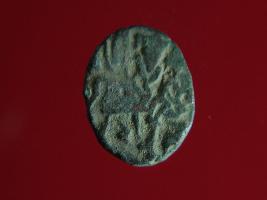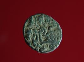 | Description / विवरण | This is a copper coin.The depression on obverse side depicts a deity sitting on a horse and holding a spear in his right hand and on reverse side a bull in a sitting position. Shape is circular. Surface is smooth. Appearance is metallic bronze. Hard patina deposited on it. |