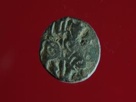 | Description / विवरण | This is a copper coin.The depression on obverse side depicts a deity sitting on a horse and holding a spear in his right hand and on reverse side a bull in a sitting position. Shape is circular. Surface is smooth. Appearance is metallic bronze. Hard patina deposited on it. |