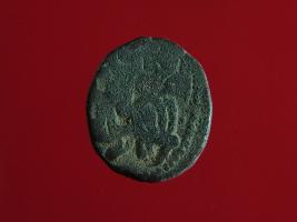 | Description / विवरण | This is a copper coin.The depression on obverse side depicts a deity sittting on a horse and holding a spear in his right hand and on reverse side a bull in a sitting position. Shape is circular. Surface is smooth. Appearance is metallic bronze. Hard patina deposited on it. |