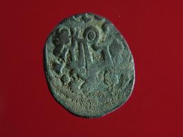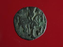 | Description / विवरण | This is a copper coin.The depression on obverse side depicts a deity sittting on a horse and holding a spear in his right hand and on reverse side a bull in a sitting position. Shape is circular. Surface is smooth. Appearance is metallic bronze. Hard patina deposited on it. |