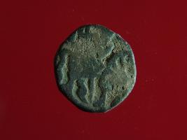 | Description / विवरण | This is a copper coin.The depression on obverse side depicts a deity sitting on a horse and holding a spear in his right hand and on reverse side a bull in a sitting position. Shape is circular. Surface is smooth. Appearance is metallic bronze. Hard patina deposited on it. |