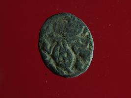 | Description / विवरण | This is a copper coin.The depression on obverse side depicts a deity sitting on a horse and holding a spear in his right hand and on reverse side a bull in a sitting position. Shape is circular. Surface is smooth. Appearance is metallic bronze. Hard patina deposited on it. |