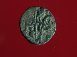 | Description / विवरण | This is a copper coin.The depression on obverse side depicts a deity sitting on a horse and holding a spear in his right hand and on reverse side a bull in a sitting position. Shape is circular. Surface is smooth. Appearance is metallic bronze. Hard patina deposited on it. |