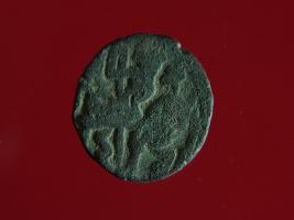 | Description / विवरण | This is a copper coin.The depression on obverse side depicts a deity sitting on a horse and holding a spear in his right hand and on reverse side a bull in a sitting position. Shape is circular. Surface is smooth. Appearance is metallic bronze. Hard patina deposited on it. |