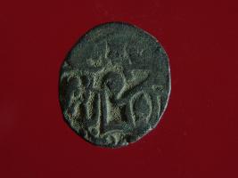 | Description / विवरण | This is a copper coin.The depression on obverse side depicts a deity sitting on a horse and holding a spear in his right hand and on reverse side a bull in a sitting position. Shape is circular. Surface is smooth. Appearance is metallic bronze. Hard patina deposited on it. |