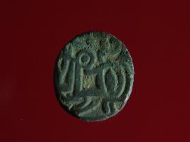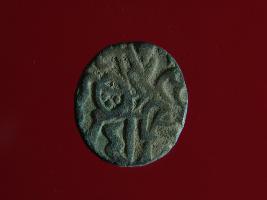 | Description / विवरण | This is a copper coin.The depression on obverse side depicts a deity sitting on a horse and holding a spear in his right hand and on reverse side a bull in a sitting position. Shape is circular. Surface is smooth. Appearance is metallic bronze. Hard patina deposited on it. |