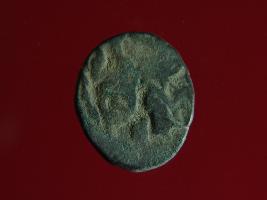 | Description / विवरण | This is a copper coin.The depression on obverse side depicts a deity sitting on a horse and holding a spear in his right hand and on reverse side a bull in a sitting position. Shape is circular. Surface is smooth. Appearance is metallic bronze. Hard patina deposited on it. |