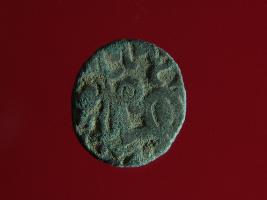 | Description / विवरण | This is a copper coin.The depression on obverse side depicts a deity sitting on a horse and holding a spear in his right hand and on reverse side a bull in a sitting position. Shape is circular. Surface is smooth. Appearance is metallic bronze. Hard patina deposited on it. |