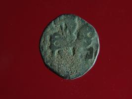 | Description / विवरण | This is a copper coin.The depression on obverse side depicts a deity sitting on a horse and holding a spear in his right hand and on reverse side a bull in a sitting position. Shape is circular. Surface is smooth. Appearance is metallic bronze. Hard patina deposited on it. |