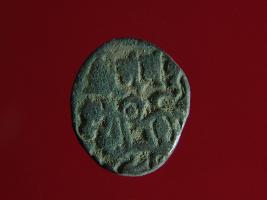 | Description / विवरण | This is a copper coin.The depression on obverse side depicts a deity sitting on a horse and holding a spear in his right hand and on reverse side a bull in a sitting position. Shape is circular. Surface is smooth. Appearance is metallic bronze. Hard patina deposited on it. |