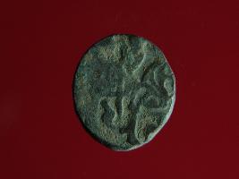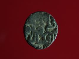 | Description / विवरण | This is a copper coin.The depression on obverse side depicts a deity sitting on a horse and holding a spear in his right hand and on reverse side a bull in a sitting position. Shape is circular. Surface is smooth. Appearance is metallic bronze. Hard patina deposited on it. |