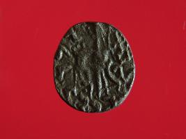 | Description / विवरण | It is a coin made of copper. The depression on obverse side depicts a human head and on reverse side there are some inscription marks. Shape is circular and surface is rough with silver coatting appearance. Hard patina deposited on it. |