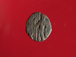 | Description / विवरण | It is a coin made of copper. The depression on obverse side depicts vasudeva in standing position. Reverse side depicts a seated human figurine and bead pattern also seen around it. It is a treated coin. shape is circular and Surface is smooth with copper brown appearance. |