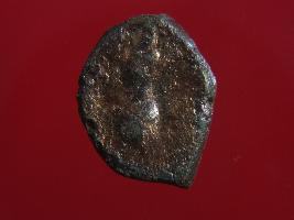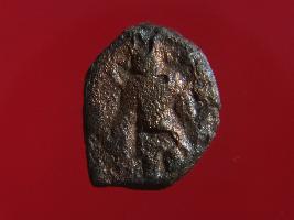 | Description / विवरण | Trench DX- 2, Layer 6 This is a copper coin made of copper alloy. It has a low relief on its both sides. The obverse side depicts a standing human figurine and the reverse side depicts a seated human figurine. Both the figurine is of monarch of Gandhar. Surface of the object is rough and colour is copper-brown. These coins were used in trade and as currency. |