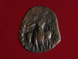 | Description / विवरण | This is a copper coin. The depression on obverse side depicts diety sitting on bull and reverse side a standing human figuine. Shape is almost circular and surface is smooth. It is treated coin. Colour of object is copper brown. |