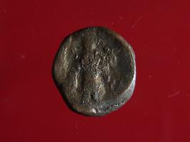 | Description / विवरण | This is a copper coin. The depression on obverse side depicts god Vasudeva and on reverse side there is sitted human figurine. Shape is almost circular and surface is smooth. It is treated coin. Colour of object is copper brown. |