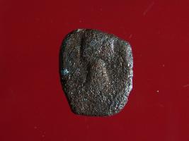 | Description / विवरण | This is a copper coin. The depression on obverse side depicts standing human figurine and on reverse side fade. Shape is almost circular and surface is smooth. It is treated coin. Colour of object is copper brown. |