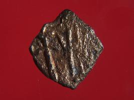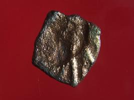 | Description / विवरण | Trench DX- 2, Depth 3.0 mts, Stratum Pit no 2 sealed by layer 2 This is a coin made of copper alloy. It has a relief of a sword or trident symbols on one side and the other side is defaced with some incisions. per-brown. |