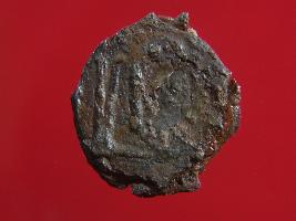 | Description / विवरण | Trench ZJ- 12, Layer 5 It is a coin made of copper. There is some inscription and human figurine on it. Shape is circular and surface is rough with copper brown appearance. |