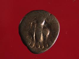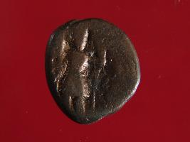 | Description / विवरण | It is a coin made of copper. The depression depicts on obverse side is a deity sitting on a bull and on reverse side is a standing human figurine. Shape is almost circular. Surface is smooth with copper brown appearance. |