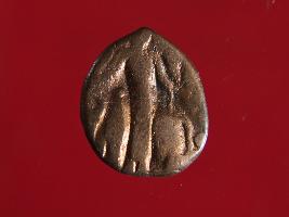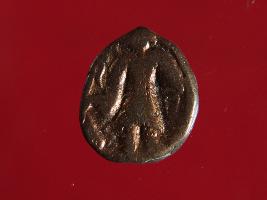 | Description / विवरण | It is a coin made of copper. The depression depicts on obverse side is a deity sitting on a bull and on reverse side is a standing human figurine. Shape is almost circular. Surface is smooth with copper brown appearance. |