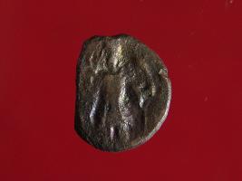 | Description / विवरण | It is a coin made of copper. The depression depicts on obverse side is a deity sitting on a bull and on reverse side is a standing human figurine. Shape is almost circular. Surface is smooth with copper brown appearance. |