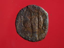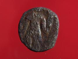 | Description / विवरण | Trench ZF-12, Pit 2 sealed by layer 1 This is a coin made of copper alloy. The relief on its obverse side suggests a standing figurine of Vasudeva. And the reverse side the relief suggests Shiva standing infornt of humped bull. Surface is uneven and colour is copper-brown. |