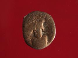 | Description / विवरण | It is a coin made of copper. The depression on obverse side depicts a deity sitting on a bull. On reverse side there is standing human figurine. Shape is almost circular. Surface is smooth with copper brown appearance. |