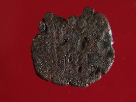 | Description / विवरण | It is a coin made of copper. The depression on obverse side depicts deity sitting on a bull. On reverse side there is standing human figurine. Shape is almost circular. Surface is rough with copper brown appearance. It is badly corroded. |