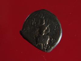 | Description / विवरण | It is a coin made of copper. The depression depicts on obverse side is a deity sitting on a bull and on reverse side is a standing human figurine. Shape is almost circular. Surface is smooth with copper brown appearance. |