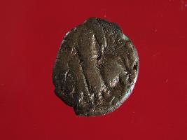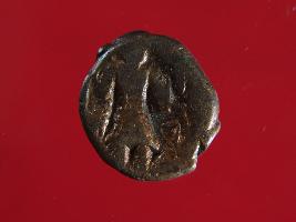 | Description / विवरण | It is a coin made of copper. The depression on obverse side depicts a deity sitting on a bull. On reverse side there is standing human figurine. Shape is almost circular. Surface is smooth with copper brown appearance. |