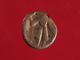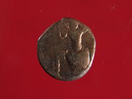 | Description / विवरण | It is a coin made of copper. The depression on obverse side depicts a deity in sitting position and on reverse side is a standing human figurine. Shape is almost circular. Surface is smooth with copper brown appearance. |