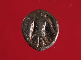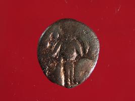 | Description / विवरण | It is a coin made of copper. The depression on obverse side depicts a deity sitting on a bull. On reverse side there is standing human figurine. Shape is almost circular. Surface is smooth with copper brown appearance. |