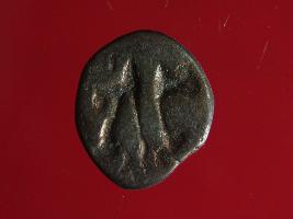 | Description / विवरण | It is a coin made of copper. The depression depicts on obverse side is a standing human figurine and reverse side is faded. Shape is almost circular. Surface is rough with copper brown appearance. |