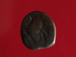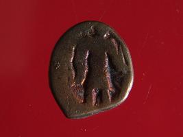 | Description / विवरण | It is a coin made of copper. The depression on obverse side depicts deity sitting on a bull. On reverse side there is standing human figurine. Shape is almost circular. Surface is smooth. Appearance is copper brown. |