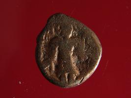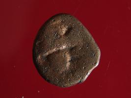 | Description / विवरण | It is a coin made of copper. The depression on obverse side depicts deity sitting on a bull. On reverse side there is standing human figurine. Shape is almost circular. Surface is rough. Appearance is copper brown. |