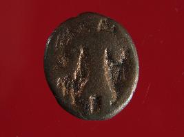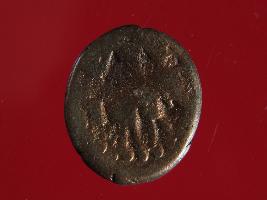| Description / विवरण | It is a coin made of copper. The depression depicts on obverse side is a deity sitting on a bull and on reverse side is a standing human figurine. Shape is almost circular. Surface is smooth with copper brown appearance. |