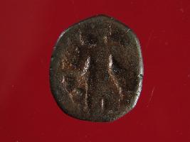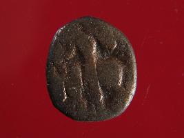 | Description / विवरण | It is a coin made of copper. The depression depicts on obverse side is a deity sitting on a bull and on reverse side is a standing human figurine. Shape is almost circular. Surface is smooth with copper brown appearance. |
