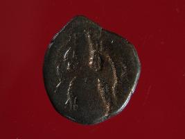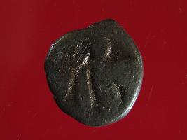 | Description / विवरण | It is a coin made of copper. The depression depicts on obverse side is a deity sitting on a bull and on reverse side is a standing human figurine. Shape is almost circular. Surface is smooth with copper brown appearance. |