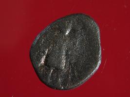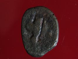 | Description / विवरण | It is a coin made of copper. The depression depicts on obverse side is a deity sitting on a bull and on reverse side is a standing human figurine. Shape is almost circular. Surface is smooth with copper brown appearance. |