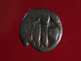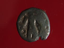 | Description / विवरण | It is a coin made of copper. The depression depicts on obverse side is a deity sitting on a bull and on reverse side is a standing human figurine. Shape is almost circular. Surface is smooth with copper brown appearance. |
