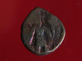 | Description / विवरण | It is a coin made of copper. The depression depicts on obverse side a deity in sitting position and on reverse side is a standing human figurine. Shape is almost circular. Surface is smooth with copper brown appearance. |