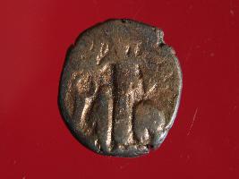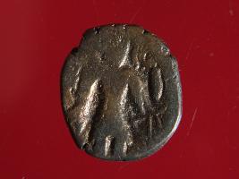 | Description / विवरण | It is a coin made of copper. The depression depicts on obverse side is a deity sitting on a bull and on reverse side is a standing human figurine. Shape is almost circular. Surface is smooth with copper brown appearance. |