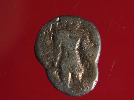 | Description / विवरण | It is a coin made of copper. The depression on obverse side depicts deity sitting on a bull. On reverse side there is standing human figurine. Shape is almost circular. Surface is rough. Appearance is copper brown. |