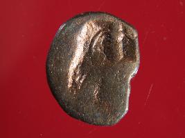 | Description / विवरण | It is a coin made of copper. The depression depicts on obverse side a deity in sitting position and on reverse side is a standing human figurine. Shape is almost circular. Surface is smooth with copper brown appearance. |