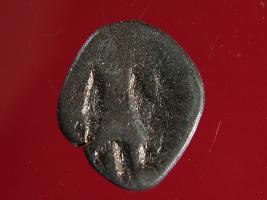 | Description / विवरण | It is a coin made of copper. The depression on obverse side depicts deity sitting on a bull. On reverse side there is standing human figurine. Shape is almost circular. Surface is rough. Appearance is copper brown. |