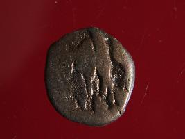 | Description / विवरण | It is a coin made of copper. The depression on obverse side depicts deity sitting on a bull. On reverse side there is standing human figurine. Shape is almost circular. Surface is rough. Appearance is copper brown. |