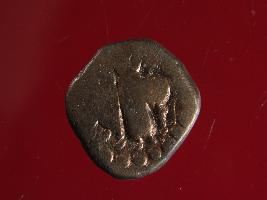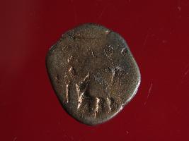 | Description / विवरण | It is a coin made of copper. The depression on obverse side depicts deity sitting on a bull. On reverse side there is standing human figurine. Shape is almost circular. Surface is smooth. Appearance is copper brown. |