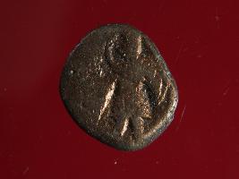 | Description / विवरण | It is a coin made of copper. The depression on obverse side depicts deity sitting on a bull. On reverse side there is standing human figurine. Shape is almost circular. Surface is smooth. Appearance is copper brown. |