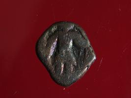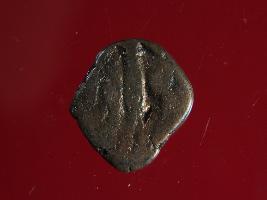 | Description / विवरण | It is a coin made of copper. The depression on obverse side depicts deity sitting on a bull. On reverse side there is standing human figurine. Shape is almost circular. Surface is smooth. Appearance is copper brown. |